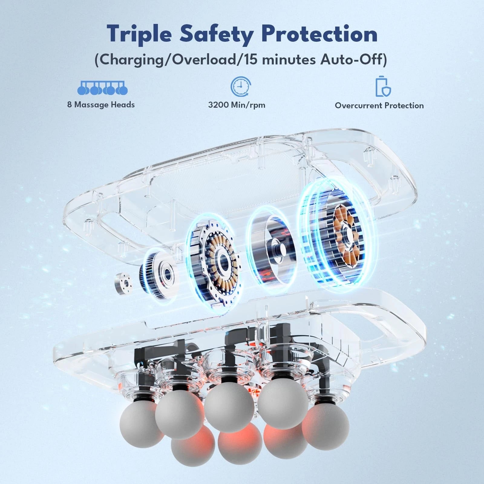 🧠 Eight Massage Heads – Includes a variety of heads for targeting different muscle groups and massage techniques.